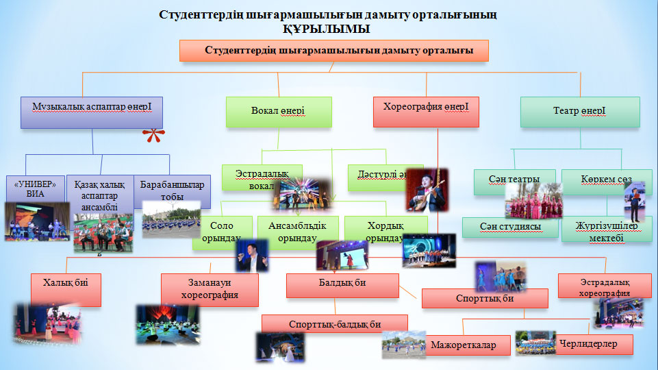 The Center for the Development of Student Creativity is the center of the university’s cultural work. CRTS carries out its activities in accordance with the Constitution of the Republic of Kazakhstan, Laws of the Republic of Kazakhstan, Decrees of the President, as well as regulatory legal acts of the Republic of Kazakhstan and these Regulations.