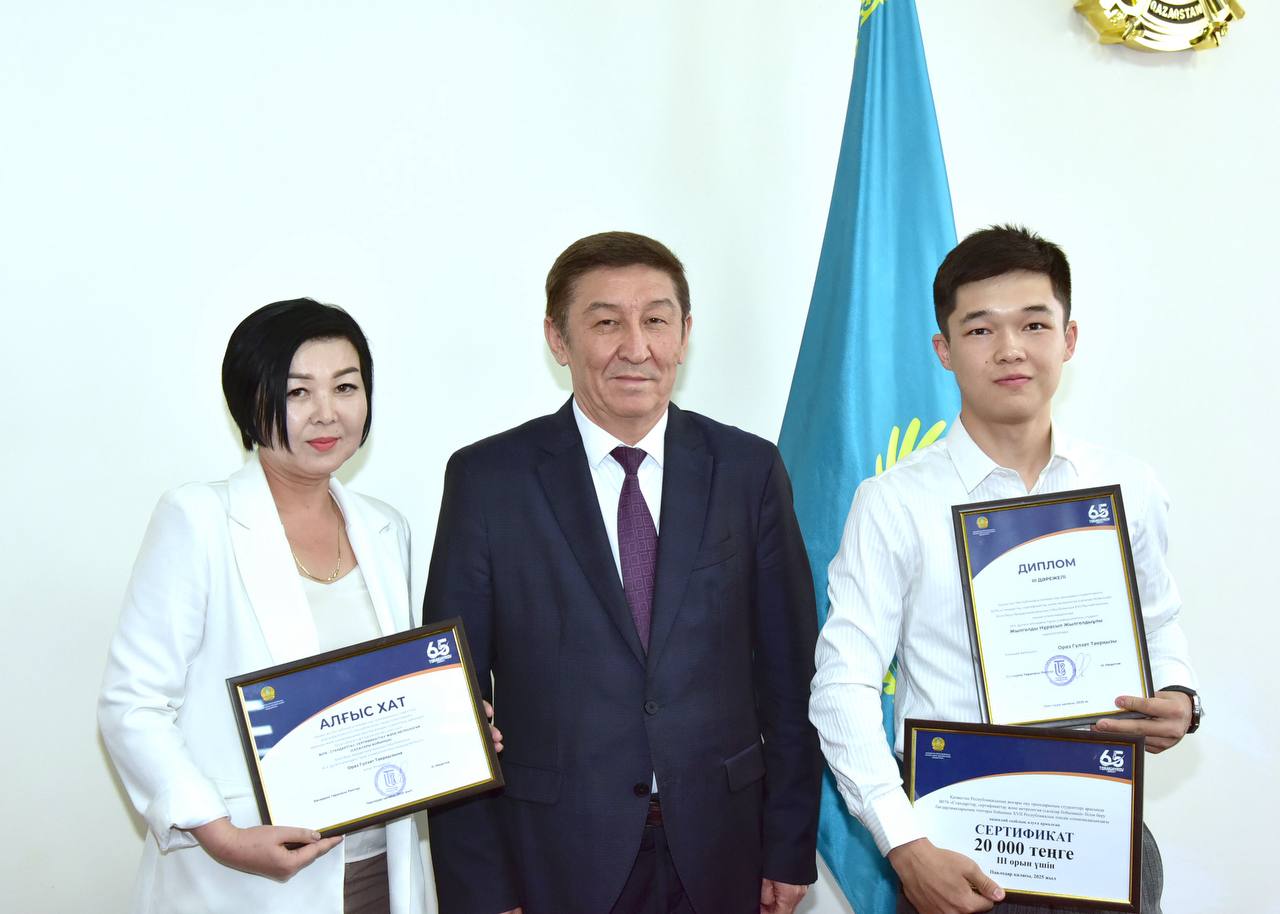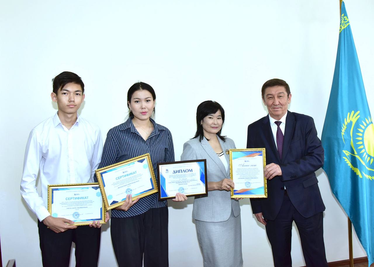 Университет қабырғасында Басқарма төрағасы – Ректор Мұхтар Байжұманов еліміздің түрлі жоғары оқу орындарында өткен байқаулар мен білім саласына үлесін қосып жүрген білімгерлер мен қызметкерлерге марапаттарын табыстады.