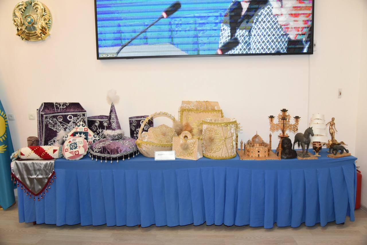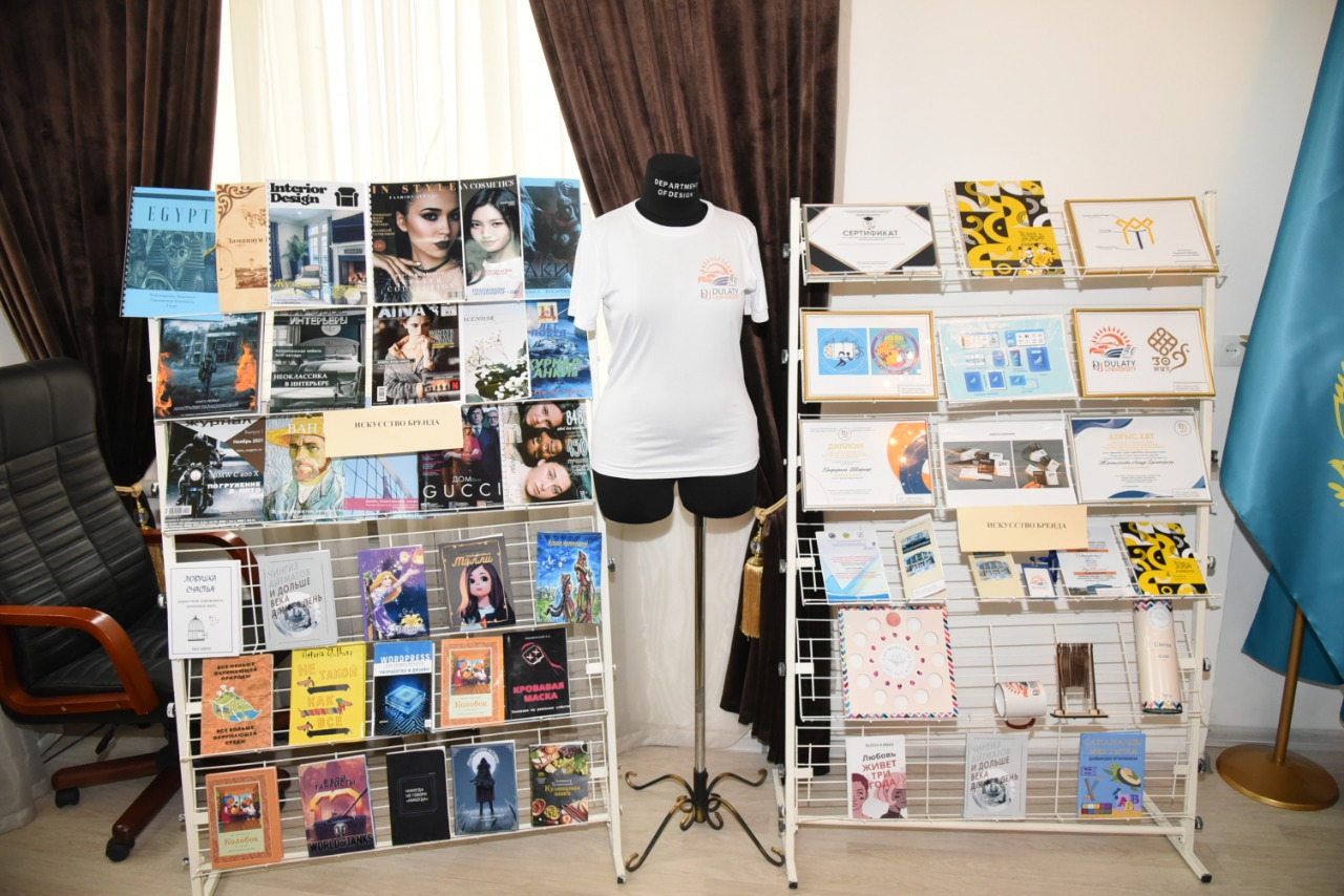 Конференц-залда үйірме мүшелері – студенттердің шығармашылық жұмыстарының көрмесі ұйымдастырылды: көркем суреттер, сәндік-қолданбалы шығармашылық заттары, манекендерде ұсынылған авангардтық костюмдер, сондай-ақ жарнамалық және баспа өнімдері: журналдар, кітаптар, буклеттер.
