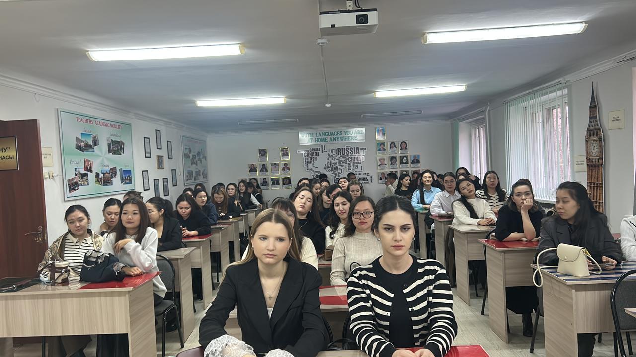 On January 12, at the department under the educational program 6B01707 — "Preparation of teachers of foreign languages" among students of the 4th year, an installation conference was organized with the aim of preparing students for production practice on the basis of secondary schools of the city of Taraz in the 2nd semester. 288 students in the 4th year will undergo practice in schools, gymnasiums and lyceums of Taraz in two languages, namely (English as the main language and German, Korean, Turkish, Chinese as the second foreign language). During the conference, the following schools were specified as a base for practitioners: secondary school No. 31, secondary school No. 32, secondary school No. 51, school-gymnasium named after Karataya Turysova No. 53, secondary school No. 54, scientific-intellectual school-lyceum "Keleshek-Taraz", secondary school No. 36, secondary school No. 26, Tole big gymnasium No. 8, Kerimbayskaya school-gymnasium No. 12, secondary school No. 23, secondary school named after T. Ryskulova No. 48, secondary school No. 3, secondary school No. 46, multi-professional gymnasium named after A. Pushkina No. 41, secondary school named after A. Gaidara No. 35, secondary school named after A. Bokeikhanova No. 1, Sh. School-gymnasium named after Murtazy, secondary school No. 64, secondary school No. 7, secondary school No. 38, specialized school-gymnasium named after Abay for gifted children with in-depth study of the Kazakh language and literature, secondary school No. 47, secondary school No. 48, specialized boarding school for gifted boys "Bilim-Innovation", specialized boarding school for gifted girls "Bilim-Innovation" "Aisha Bibi" and others.