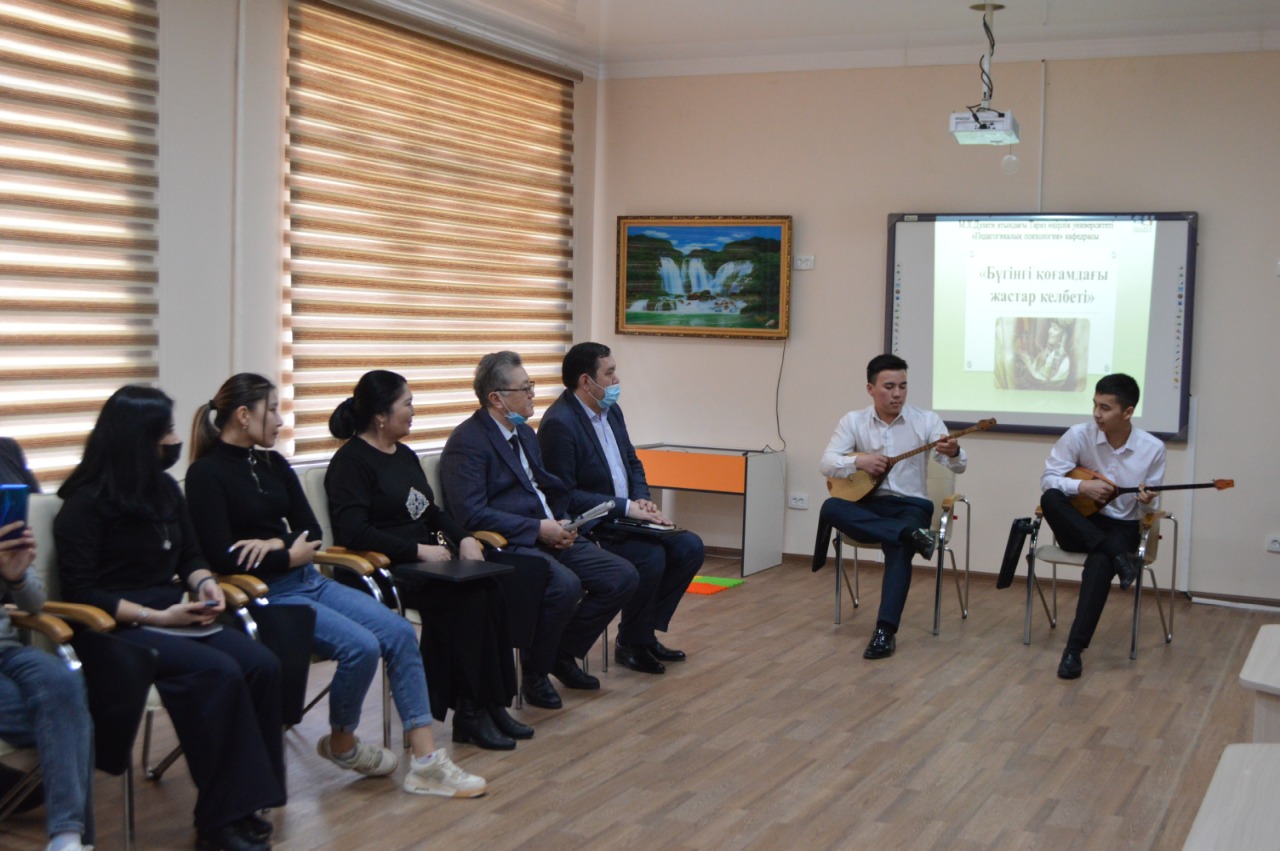 Қазіргі қоғамда жастардың психологиялық дамуы, сапалы білім алуы және қоғамда өз орнын табуы сияқты өзекті мәселелер тұлғалық қалыптасуға әсер етеді. Орталық директоры Ж.Калыбекова бірнеше бағыттарда жүргізілетін жұмыстар: тұлғаны психологиялық диагностикалау және тексеру, әлеуметтік-психологиялық патронаж (жүйелі түрде қадағалау), көрсетілетін қызметтерді алушылармен психологиялық-профилактикалық жұмыс, психологиялық консультация беру, психологиялық түзету және т.б. туралы айтып өтті. Кафедра меңгерушісі Сматова К.Б., аға оқытушы Қарабекова А.Ж. жастардың мәдени-рухани өмірі, отбасы психологиясы, мінез-құлық стереотиптері, жанжалды қарым-қатынас және т.б. әлеуметтік, психологиялық-педагогикалық мәселелер аясында өз пікірлерін білдірді. Ұлттың бүгіні мен келешегі – белсенді жастардың қолында дейтін болсақ, ұлттың рухани құндылықтарын бойына сіңірген ұрпақ ғана ел болашағын қалыптастыра алады.