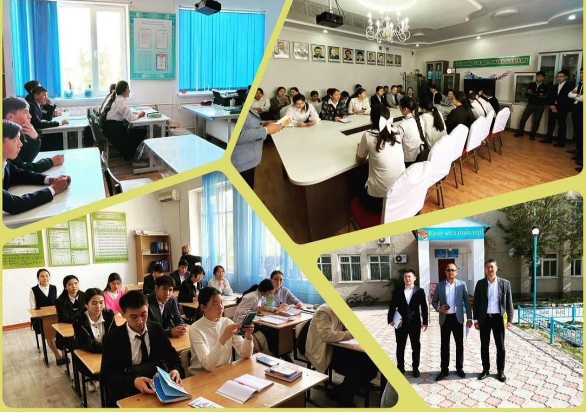 Байзақ ауданындағы Сарыкемер мектеп-гимназиясы мен Дихан ауылындағы Дихан тірек мектебі, «Королевка», «Амангелді», «Жаңатұрмыс», Жамбыл ауданындағы Шайқорық, Айша биби ауылы Каратау участкесіндегі Т.Рысқұлов атындағы орта мектептерінің, Аса ауылында Ю.Гагарин атындағы мектеп-гимназиясында, Байзақ ауданындағы №4 мектеп-лицей, Көктал және Бурыл орта мектептеріне, Құмжота ықшам ауданындағы А.Алтынсарин атындағы орта мектепте, Жуалы ауданындағы №1 мектеп – гимназиясында «Кәсіби білім алу – болашаққа жарқын жол» тақырыбында аймақтық акциясы ұйымдастырып, түлектерімен кездесіп, кәсіби бағдар жұмыстарын жүргізді. Кездесуде М.Х.Дулати атындағы Тараз өңірлік университетінің бүгінгі жағдайы мен жетістіктері, университеттің барлық білім беру бағдарламаларының ерекшеліктері, ҰБТ-ның жаңа форматы туралы және оқуға қабылдау ережелерін жете түсіндіріп өтті. Түлектер тарапынан сұрақтар қойылды.