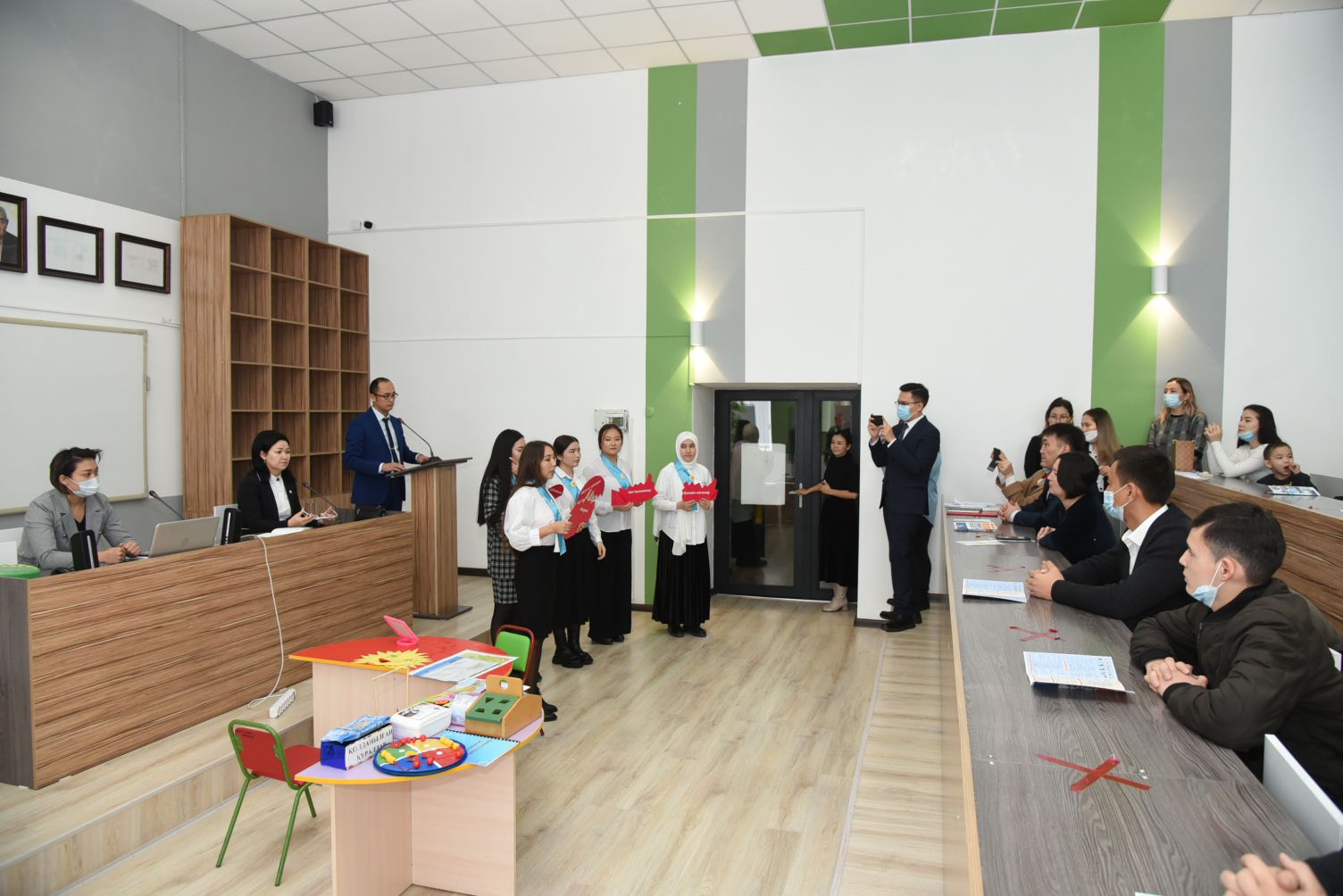 Ашық есік күнінің мақсаты: мамандық таңдауда оқушылар бойында жауапкершілікті қалыптастыру; мамандық таңдауына көмектесу, кәсіби бағдар беру және психологиялық қолдау көрсету; жаңа мамандықтар мен құзыреттер атласын түсіндіру; университеттің профессор-оқытушылар құрамы мен материалдық-техникалық базасымен таныстыру.Бүгінгі іс-шара барысын алғы сөзімен бастаған «Ұстаз» институты директоры э.ғ.к., доценті О.К.Джолдасова кәсіби бағдар беру жұмысының маңызын, оның мемлекет үшін алатын орнын және Финляндия мемлекетінің білім беру жүйесімен толық оқушыларға баяндап берді. Арнайы және әлеуметтік педагогика кафедрасының аға оқытушысы Е.Б.Дүйсенбеков «Мамандықтар атласы» туралы кеңінен түсіндіріп өтті. «Сөйлеу дыбысы бұзылған баламен жұмыс» тақырыбында логопедиялық жұмысты «Дефектология» мамандығының 4-курс студенті Қыдырқожа Әсем аса шеберлікпен көрсете білді. «Өзін-өзі тану – рухани-адамгершілік білім берудің ізгі жолы» тақырыбында «Әлеуметтік педагогика және өзін-өзі тану» мамандығының 4-курс студенттері өз мамандық ерекшеліктерін сахналық қойылым арқылы көрсете білді. Сахналық қойылым идеясы мен сценариін жазған «Арнайы және әлеуметтік педагогика» кафедрасы меңгерушісі п.ғ.к., доценті Г.Е.Санай.