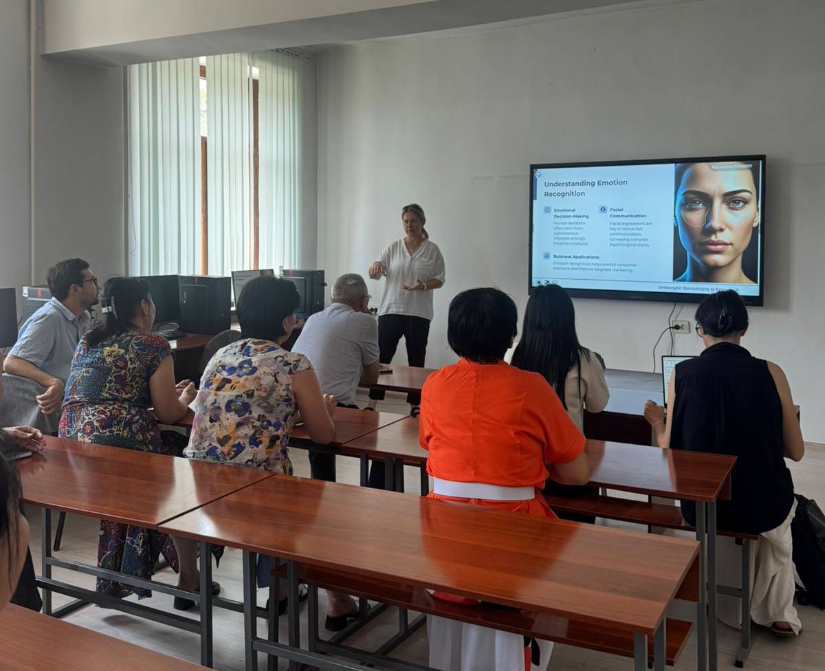 Кафедра оқытушыларына «Жасанды интеллект негізінде эмоцияларды тану» тақырыбында ғылыми жұмыстарының нәтижелерімен таныстырды. Дискуссия барысында жаңа идеялар айтылып, бірге ғылыми зерттеу жұмыстарын ұйымдастыру жолдары талқыланды. Сонымен қатар, келген профессорлар «Ақпараттық жүйелер» кафедрасында жүргізіліп жатқан ғылыми-зерттеу жұмыстары және лабораториялармен танысты.
