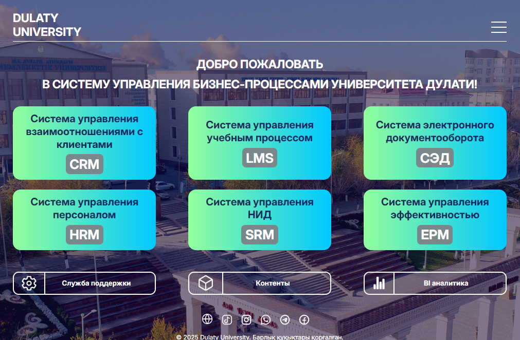 М.Х. Дулати атындағы Тараз университеті 1998 жылы үш жоғары оқу орнының базасында құрылды: Жамбыл университеті, Жамбыл гидромелиоративтік-құрылыс институты және Жамбыл жеңіл және тамақ өнеркәсібі технологиялық институты.