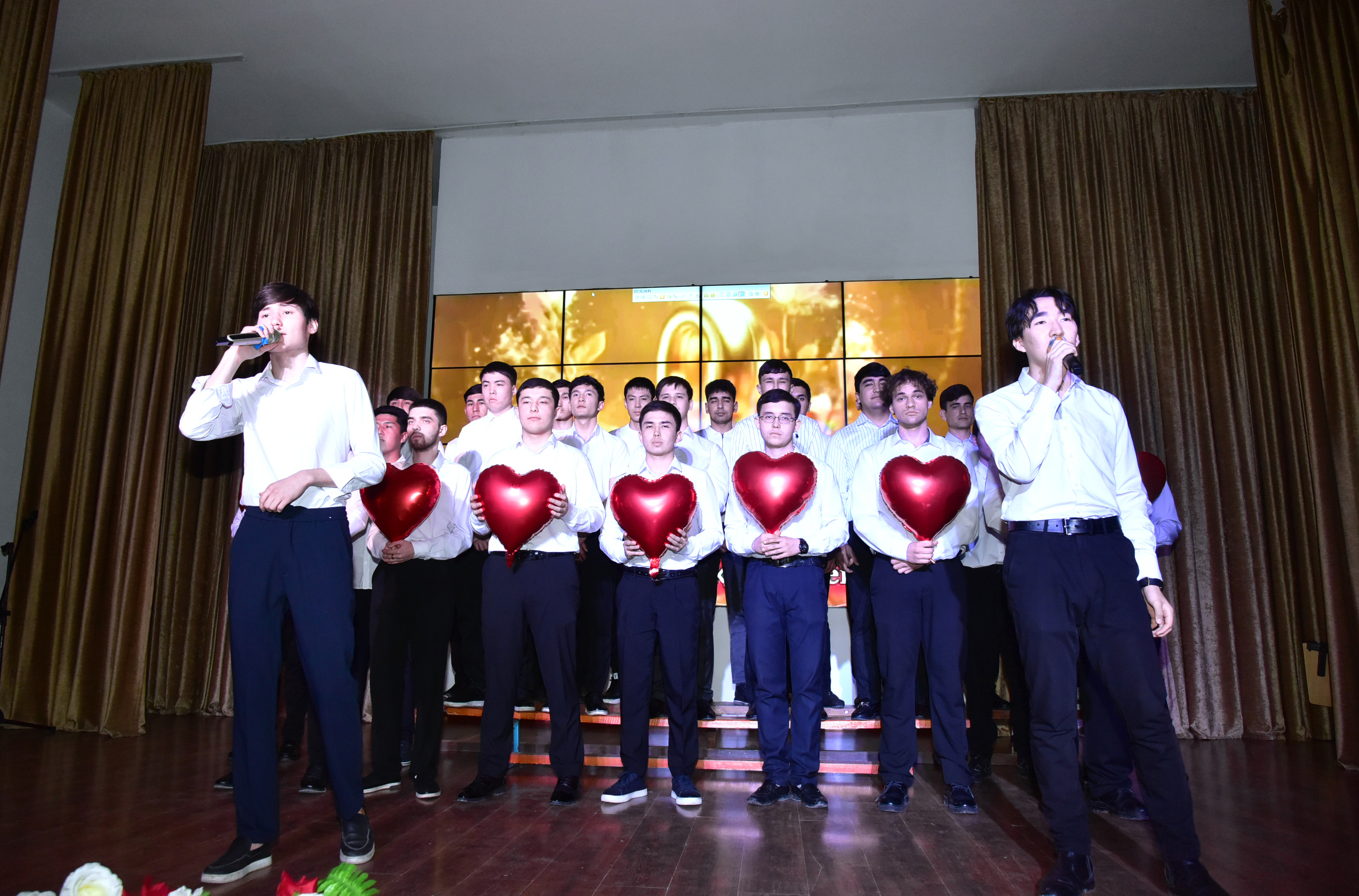 Кеш шымылдығы студенттерден құралған топтың орындауындағы «Ана» әнімен түрілді. Әсерлі орындалған туынды көрермендерге ерекше әсер сыйлады. Сонымен қатар, ананың қоғамдағы рөлі туралы заманауи AI технологиялары негізінде дайындалған мазмұнды визуалды презентация ұсынылды. Онда ана бейнесі – отбасының тірегі, тәрбие мен ізгіліктің бастауы ретінде кеңінен сипатталды.