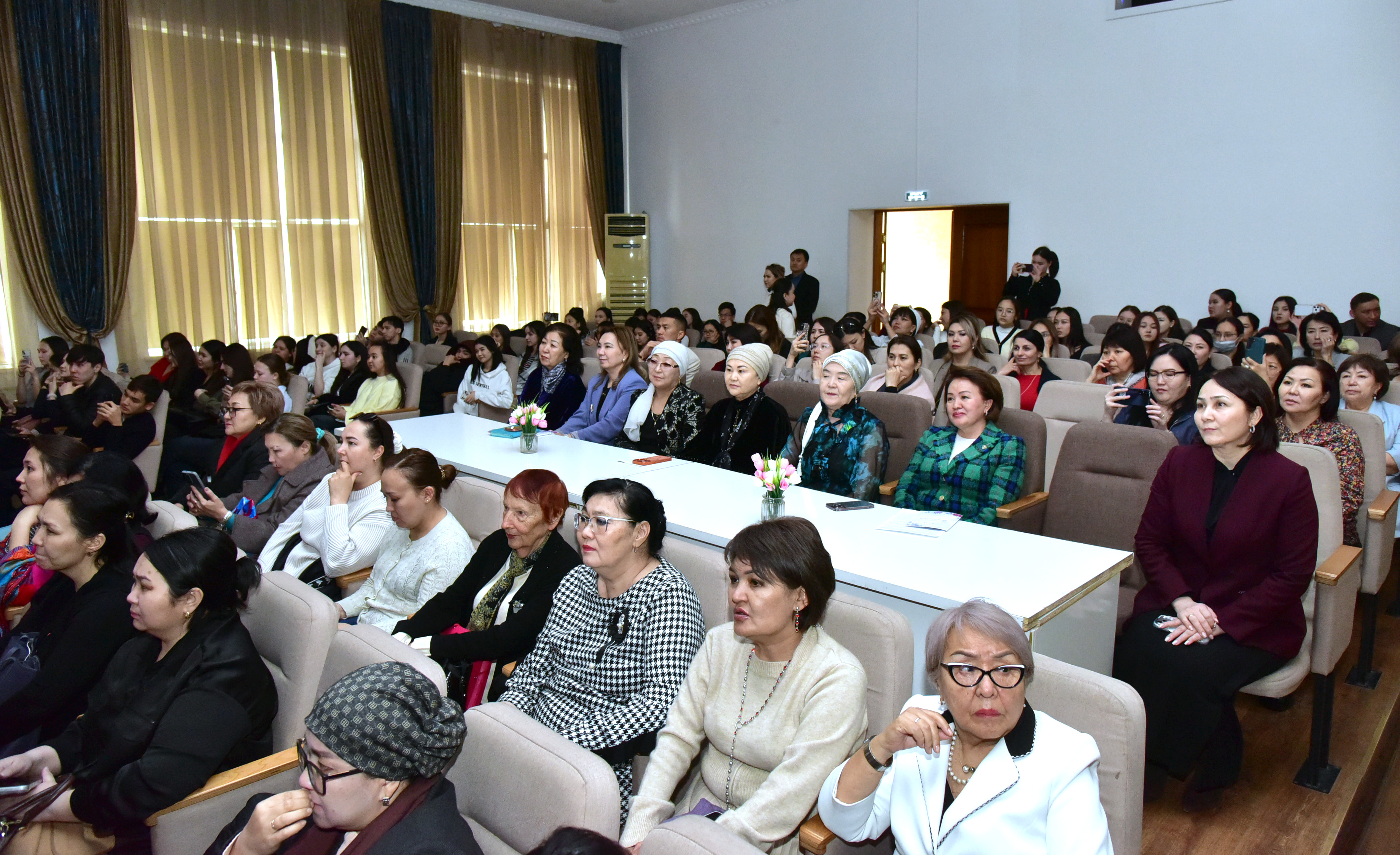 Салтанатты кешті Басқарма Төрағасы – Ректор Ләззат Еркінбаева құттықтау сөзбен ашты. Ол аналардың қоғамдағы орны айрықша екенін атап өтіп, әйел – отбасының ұйытқысы әрі ұлт тәрбиесінің негізін қалаушы тұлға екенін айтты. Ана мейірімі мен парасаты елдің рухани байлығы екенін, ал олардың еңбегі мен төзімі қоғам дамуының маңызды тіректерінің бірі екенін тілге тиек етті. Сонымен қатар, университеттегі әйел оқытушылар мен қызметкерлердің білім мен ғылым саласындағы еңбегін жоғары бағалап, олардың жас ұрпақ тәрбиесіндегі рөліне тоқталды.