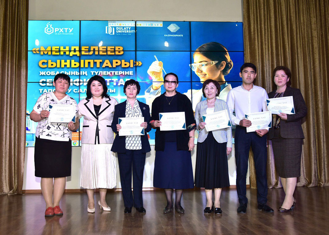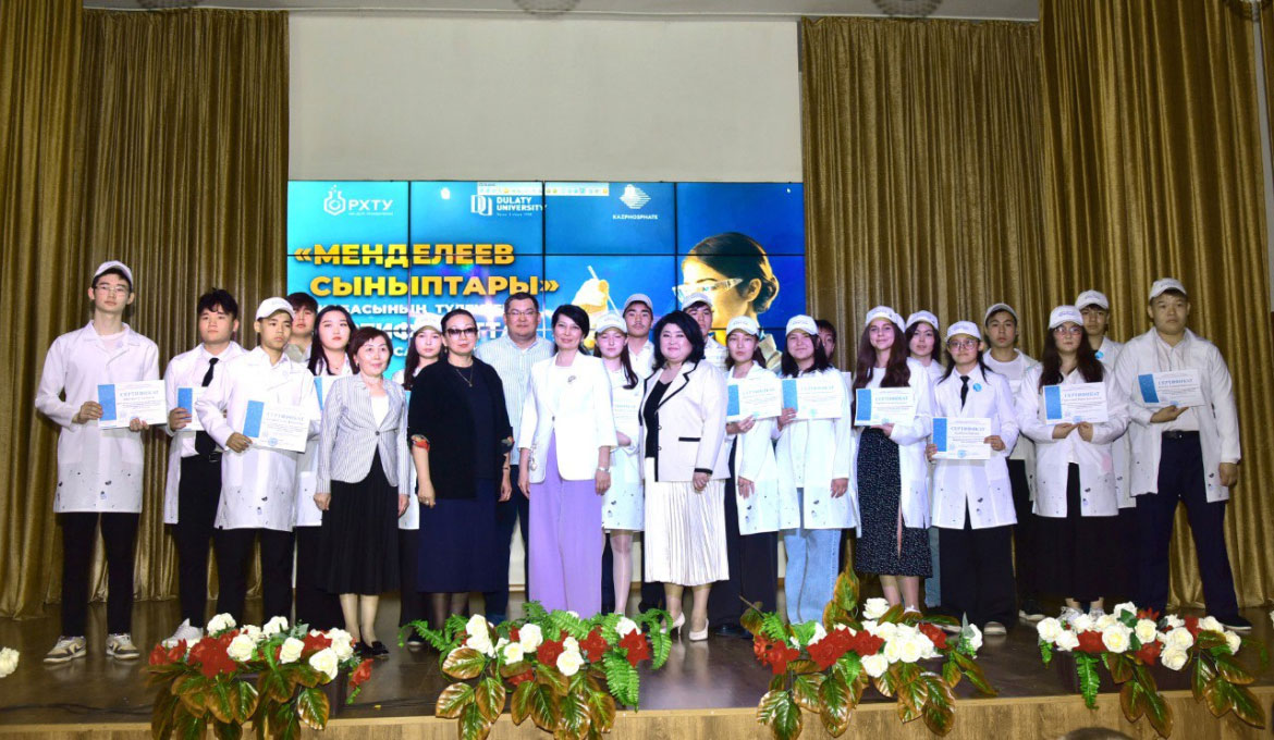 М.Х. Дулати атындағы Тараз университетінде «Менделеев сыныптары» жобасының 10-11 сынып бітірушілеріне сертификат табыстау рәсімінің салтанатты жиыны өтті.