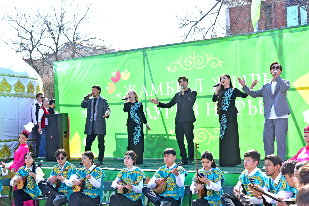 Жиында Дулати университеті «Жамбыл жырымен жаңарған Наурыз!» тақырыбында мерекелік кеш ұсынып, барша жиналған жұртшылыққа ерекше қуаныш сыйлады.