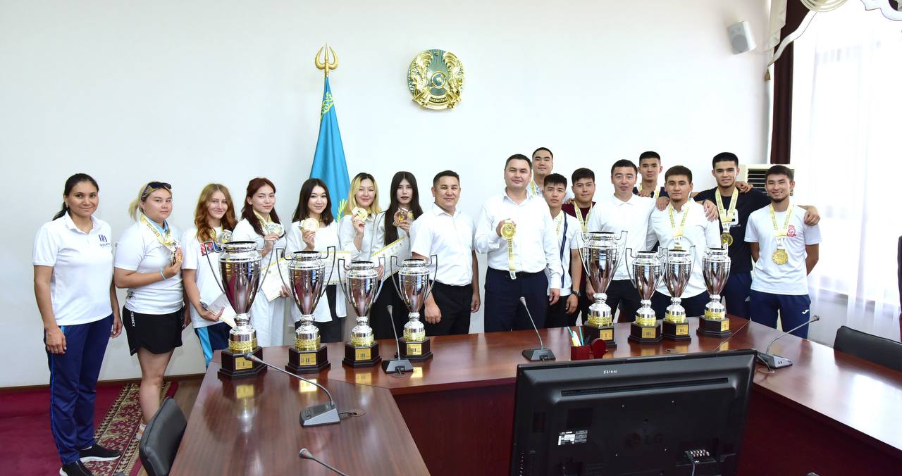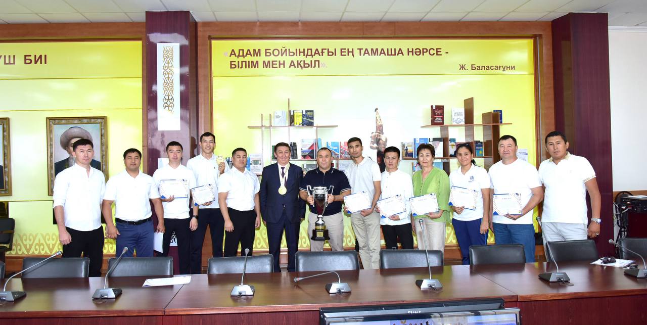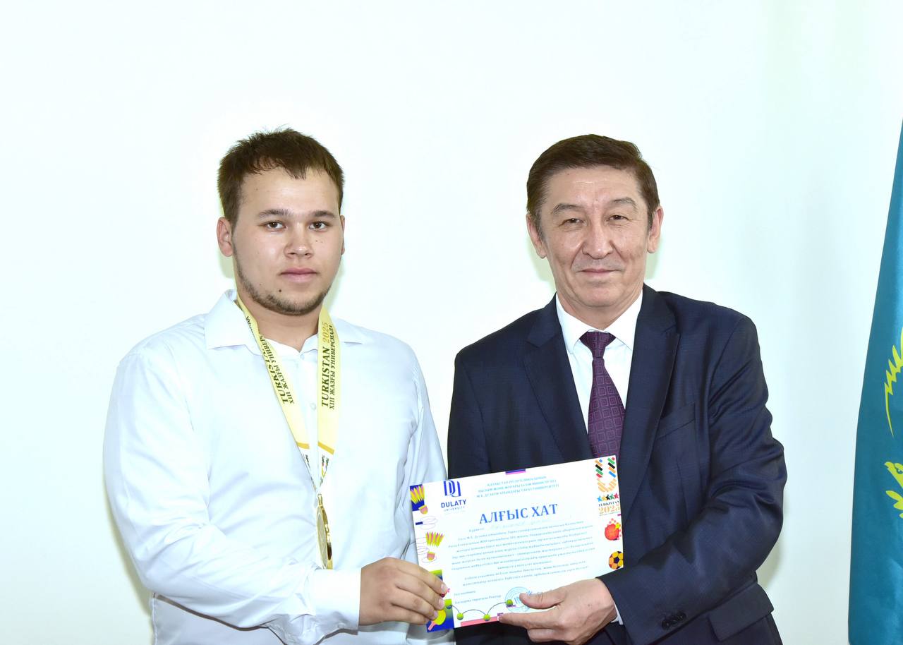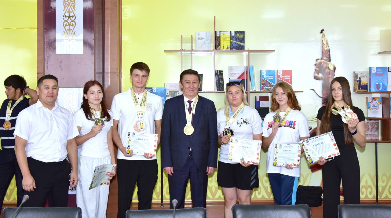 Мұхтар Қазбекұлы марапат иелерін шын жүректен құттықтап, дүбірлі додада жеткен жетістіктері университет мақтанышы екенін атап өтті. Сондай-ақ, спорт жолындағы табандылықтары мен талпыныстары жемісті болуына тілектес екенін білдіріп, алдағы бастамаларына сәттілік тіледі.