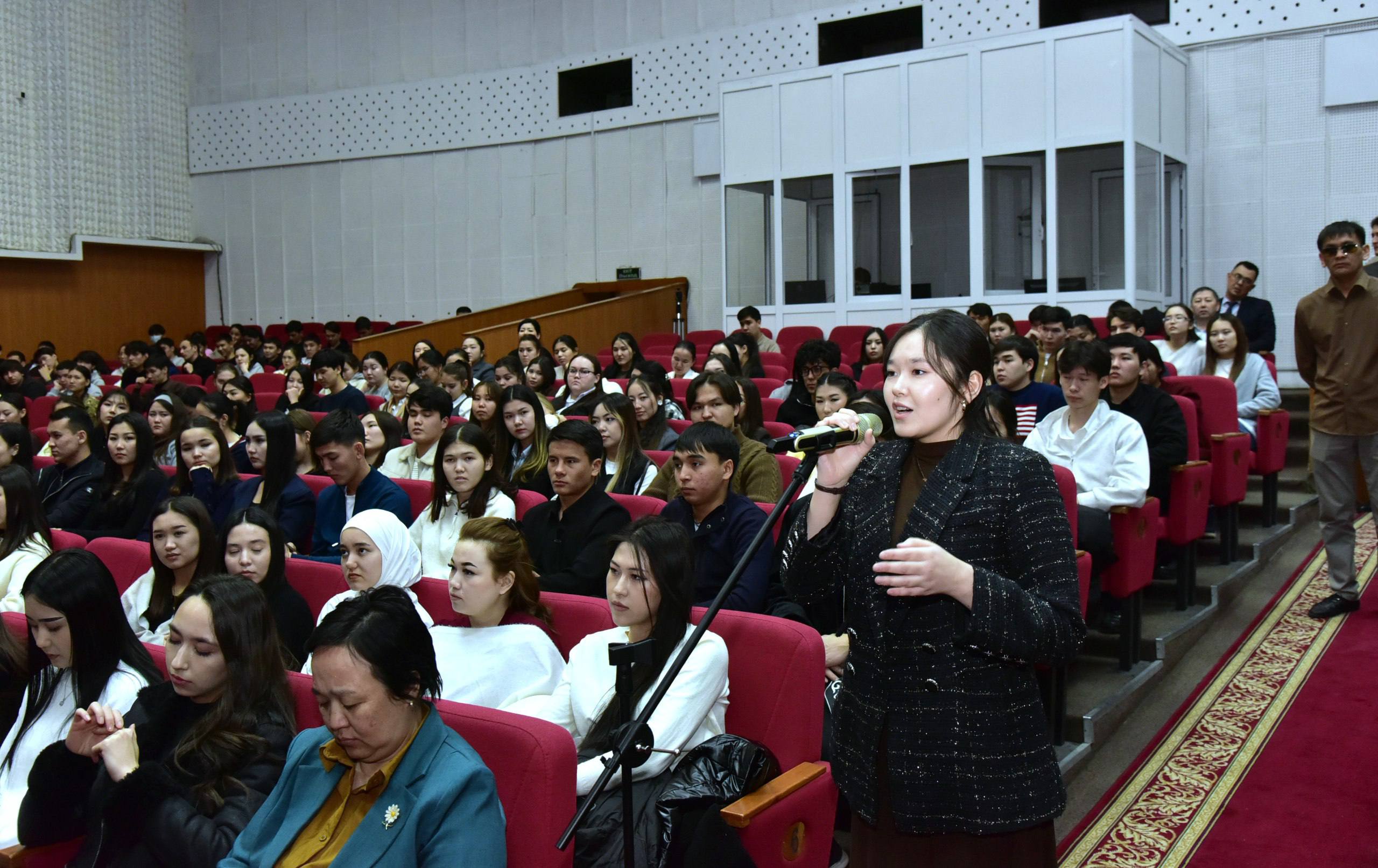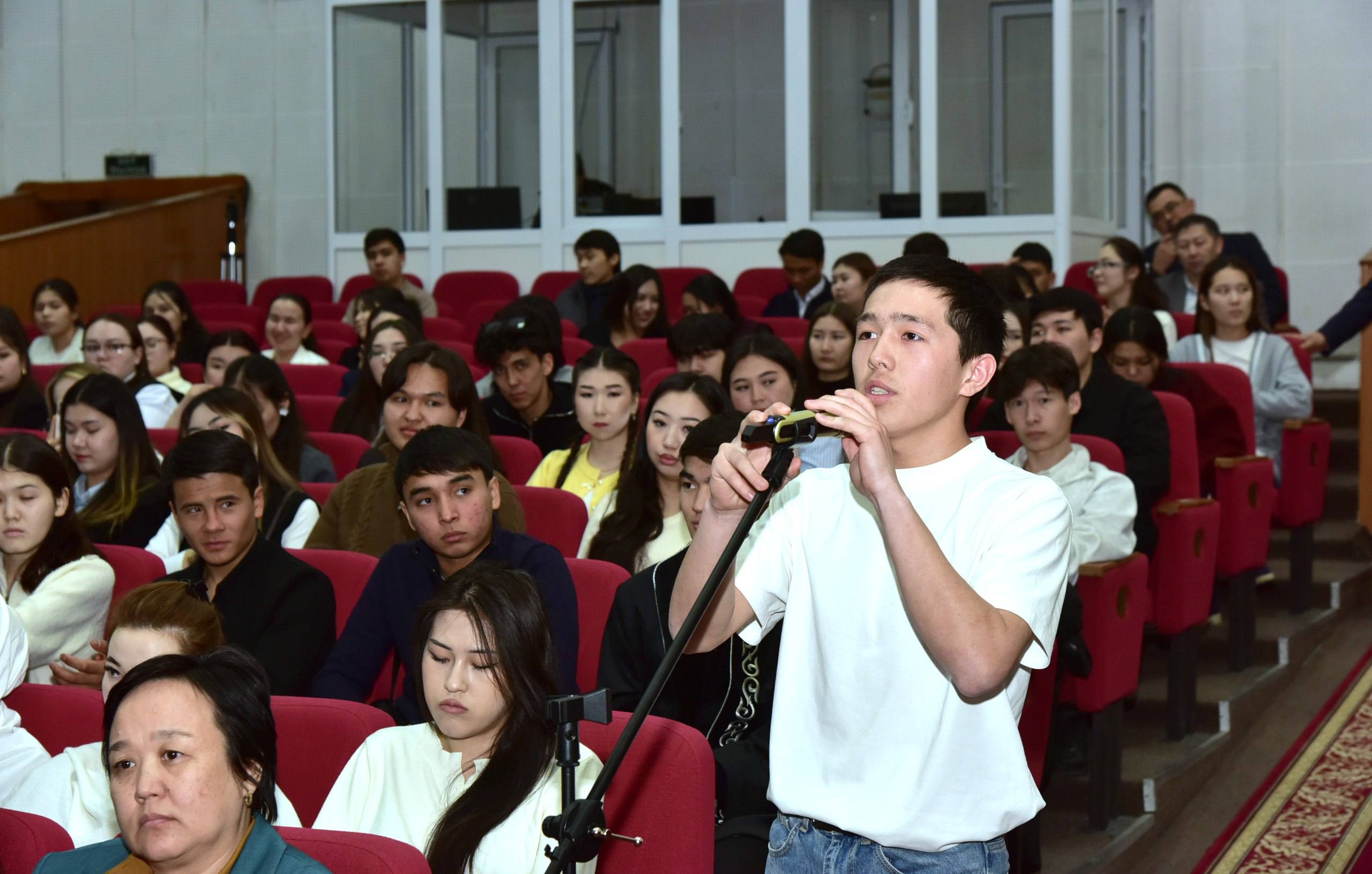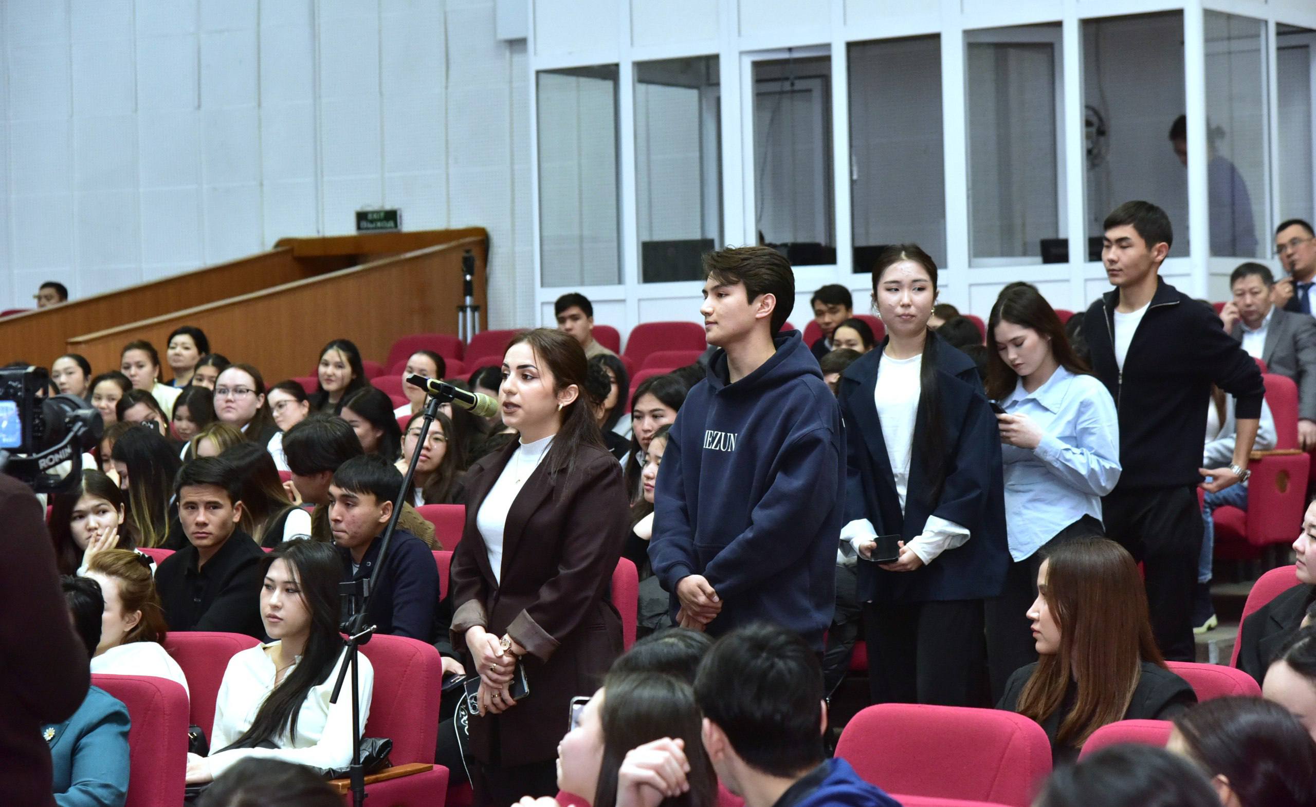 Кездесу барысында ректор жастарға білім алу, тәрбиеге көңіл бөлу және еліміздің дамуына жауапкершілікпен қарау қажеттігін жеткізді. Алдағы республикалық референдумның мемлекет дамуы үшін маңызы зор екенін атап өтіп, бұл саяси науқан әрбір тұлғаның азаматтық ұстанымы мен жауапкершілігін айқындайтын маңызды кезең екенін жеткізді. Осы ретте жастарға белсенділік танытуға, өз көзқарасын еркін білдіруге және мемлекет дамуындағы өз орнын терең сезінуге шақырды.