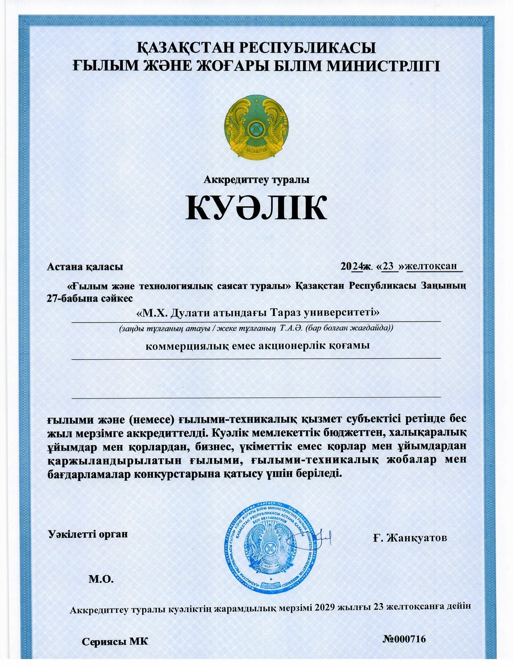 Аккредиттеу туралы куәлік