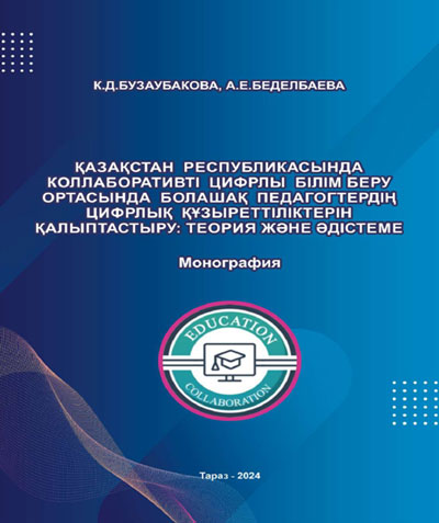 Монографияның атауы: «ҚАЗАҚСТАН РЕСПУБЛИКАСЫНДА КОЛЛАБОРАТИВТІ ЦИФРЛЫ БІЛІМ БЕРУ ОРТАСЫНДА БОЛАШАҚ ПЕДАГОГТЕРДІҢ ЦИФРЛЫҚ ҚҰЗЫРЕТТІЛІКТЕРІН ҚАЛЫПТАСТЫРУ: ТЕОРИЯ ЖӘНЕ ӘДІСТЕМЕ»
