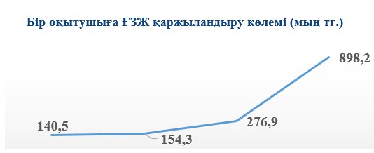 2024 жылы бір штаттық оқытушыға қаржыландыру көлемі 898,2 мың теңгені құрады. Бұл көрсеткіш, 2023 жылы 276,9 мың теңгені, ал 2022 жылы 154,3 мың теңгені құрады.