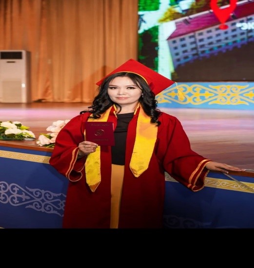 Тараз мемлекеттік педагогикалық университеті 2016-2020 жж. 6В01700 – «Қазақ тілі мен әдебиеті мұғалімдерін даярлау» білім беру бағдарламасының түлегі. Кейін М. Х. Дулати университетінде магистратурада білім алып, 2025 жылы 8D01701 «Қазақ тілі мен әдебиеті педагогтарын даярлау» білім бағдарламасы бойынша докторантураны аяқтады. Жыл студентi – 2019, Жас ғалым -2019 атақтарының иегері.