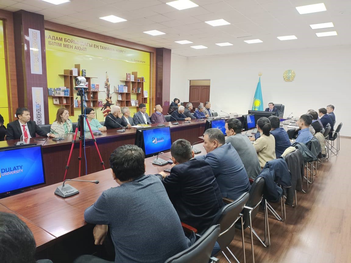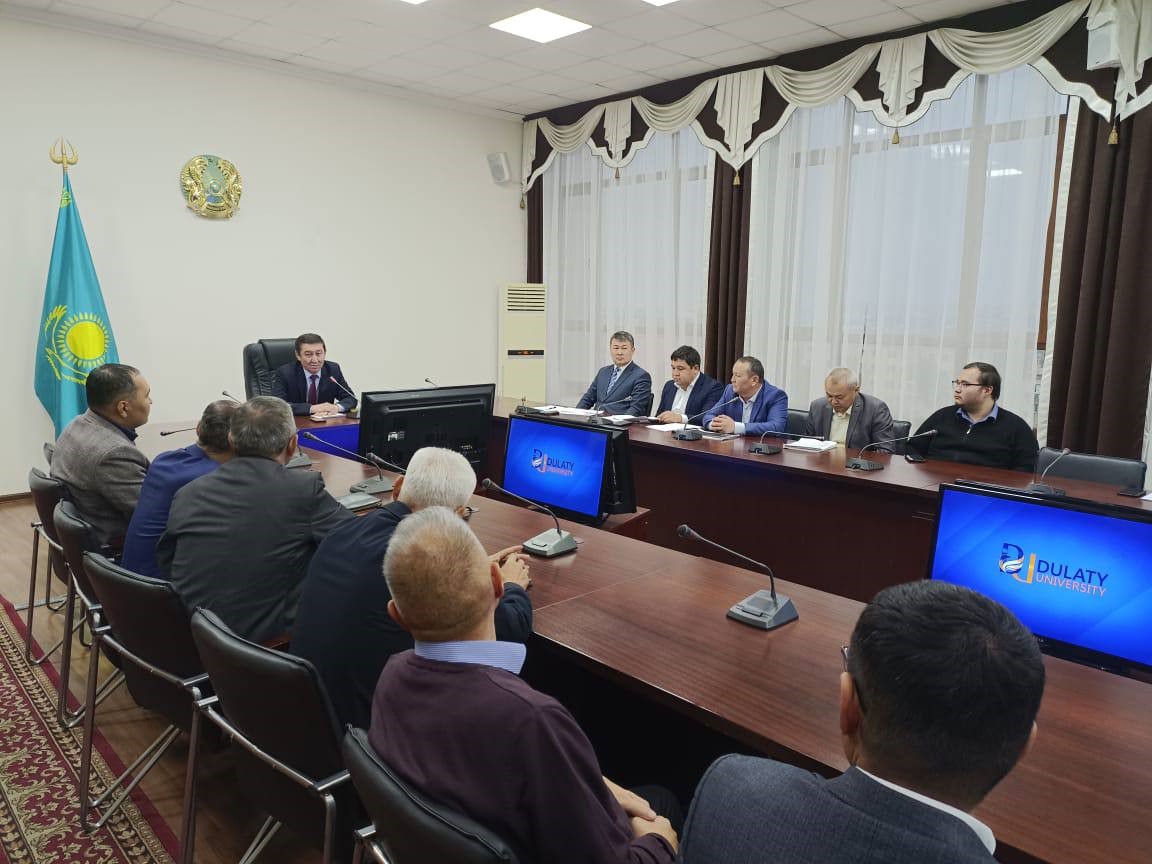 В стенах университета Дулати с участием Председателя Правления-ректора Мухтара Байжуманова состоялась встреча с членом правления проректором по науке и цифровизации Сейтжаном Орынбаевым по вопросам отчета руководителей структурных подразделений, проектов грантового финансирования и выполнения руководителями целевых программ научно-исследовательских работ.