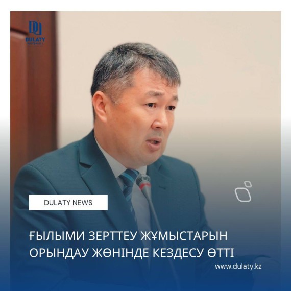 Дулати университеті қабырғасында Басқарма Төрағасы – Ректор Мұхтар Байжұмановтың қатысуымен Басқарма Мүшесі Ғылым және цифрландыру жөніндегі проректор Сейтжан Орынбаевқа қарасты құрылымдық бөлім басшыларының есебі, гранттық қаржыландыру жобалары мен мақсатты бағдарламалар жетекшілерінің ғылыми зерттеу жұмыстарды орындау барысы жөнінде кездесу өтті.
