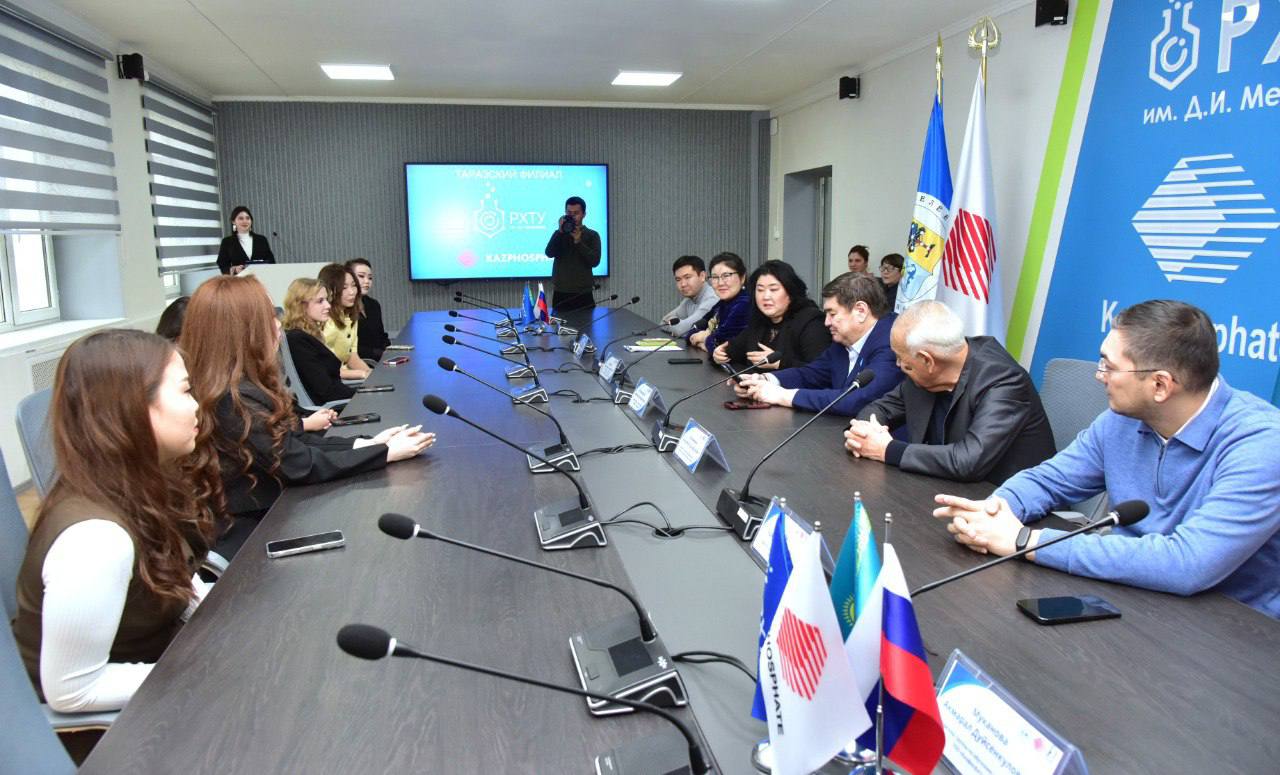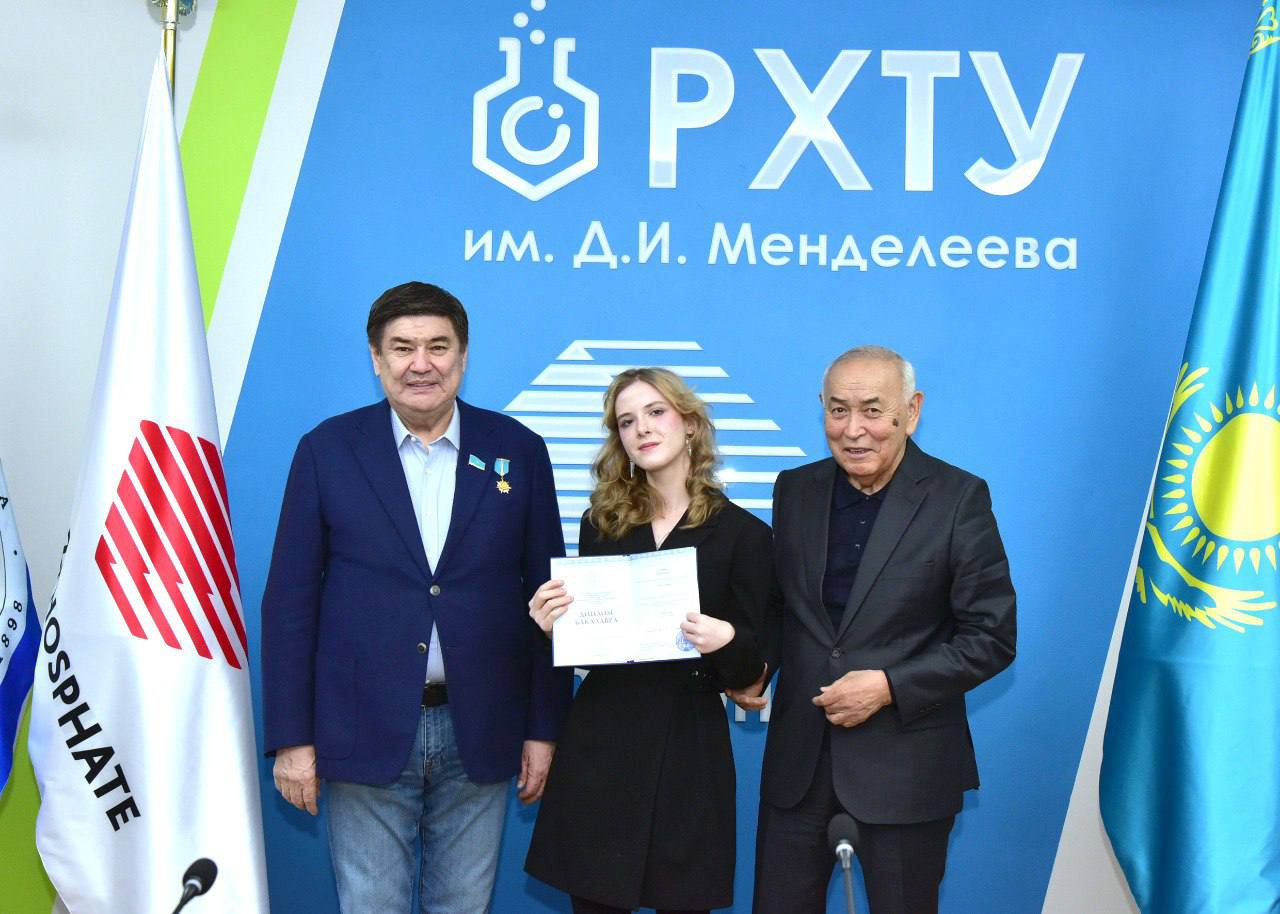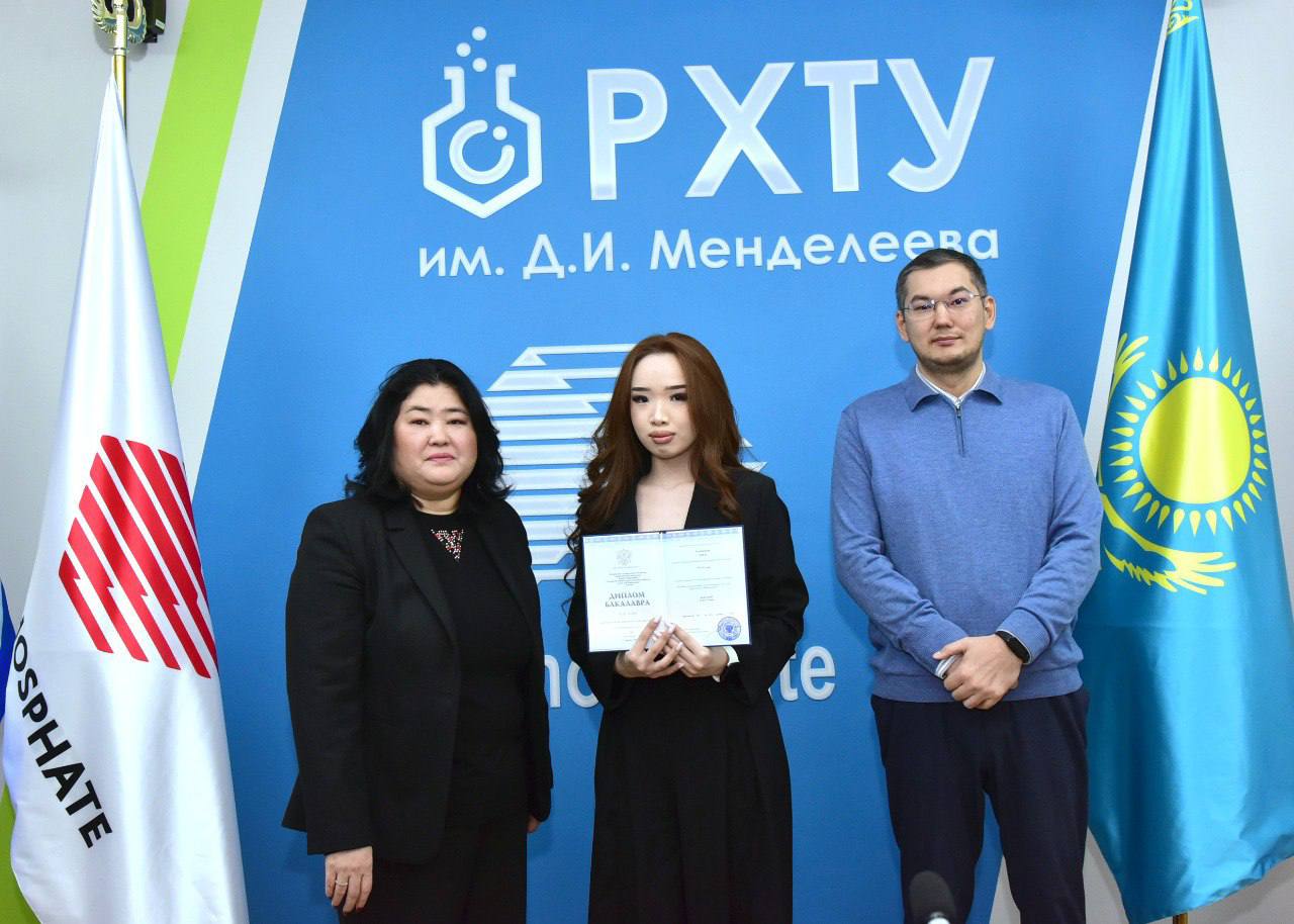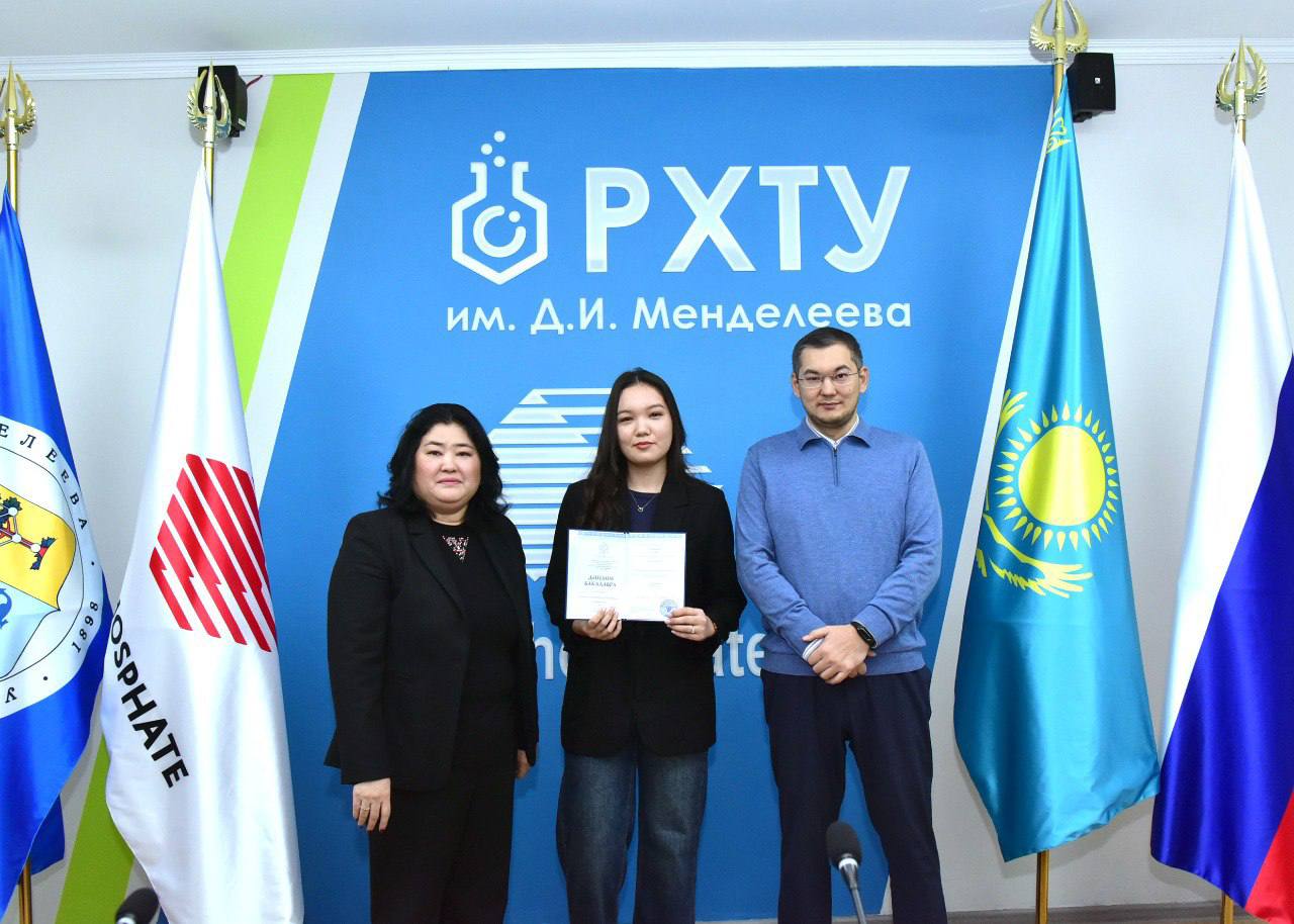 Сегодня в городе Тараз состоялась торжественная церемония вручения дипломов выпускницам сетевой образовательной программы, реализуемой в формате триединого партнёрства между Д.И. Менделеевским российским химико-технологическим университетом, Университетом Дулати и индустриальным партнёром — ТОО «Казфосфат».