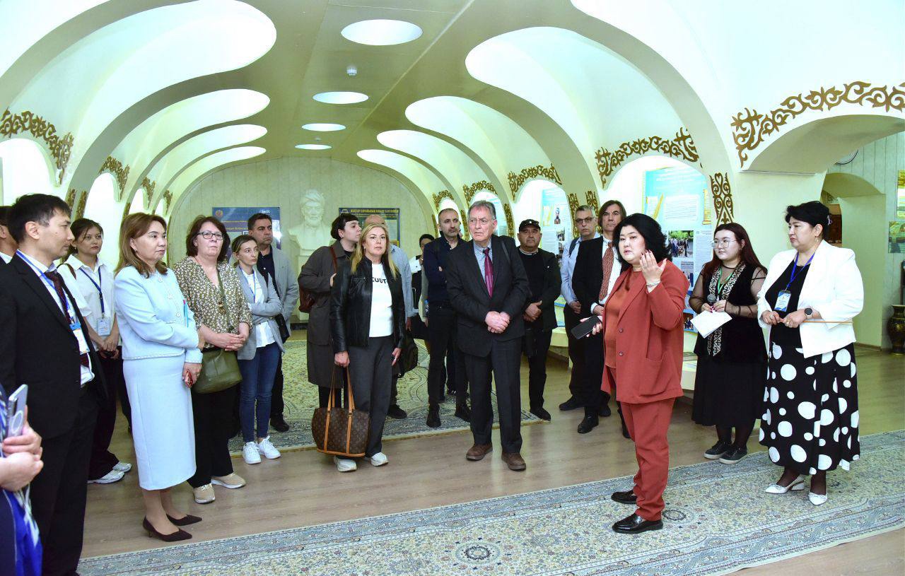 Гости также осмотрели музей университета, расположенный в главном здании, и получили возможность всесторонне ознакомиться с творчеством М.Х. Дулати. В экспозиции музея представлены личные реликвии историка, архивные документы, отражающие его общественную и научную деятельность, исторические фотографии, редкие издания и рукописи. Гости внимательно изучали каждый экспонат, высоко оценив вклад Дулати в историю и культуру Казахстана. Музей не только демонстрирует исторические факты, но и через популяризацию культурного и научного наследия страны предлагает студентам и международным гостям духовный и образовательный опыт.
