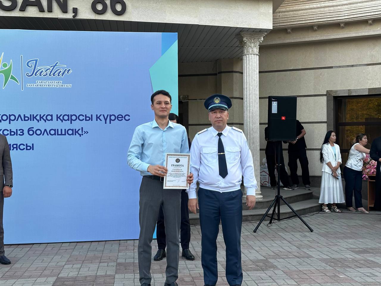 Халықаралық нашақорлыққа қарсы күрес күніне орай Тараз қаласындағы Қ.Рысқұлбеков атындағы саябақта есірткіге қарсы айлықтың жабылу рәсімі өтті. Шараға қала тұрғындары, жастар, полиция қызметкерлері мен еріктілер қатысты.