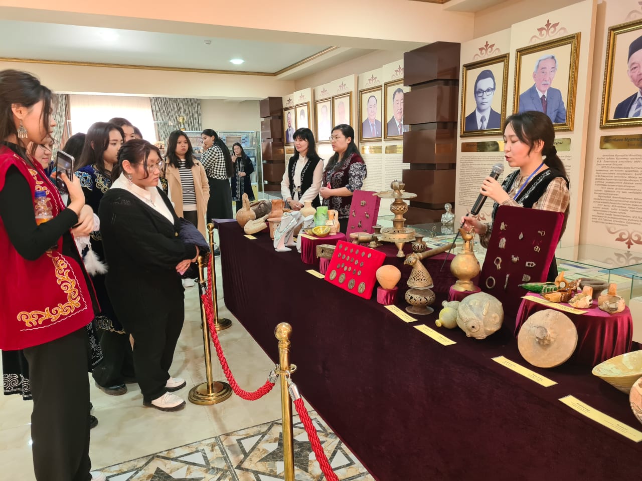 Преподаватели кафедры Алимханова Г.А. и Сабырова Д.П. пригласили сотрудников Государственного историко-культурного музея-заповедника «Памятники Древнего Тараза» комитета культуры и Министерства культуры и спорта РК, организовавших выездную выставку древних экспонатов бытового обихода казахов, образцов женских украшений 12-13 веков. Искусствоведы прочитали обзорную лекцию об истории края и памятниках архитектуры, рассказав легенду о трагичной истории любви Айша Биби и Карахана.
